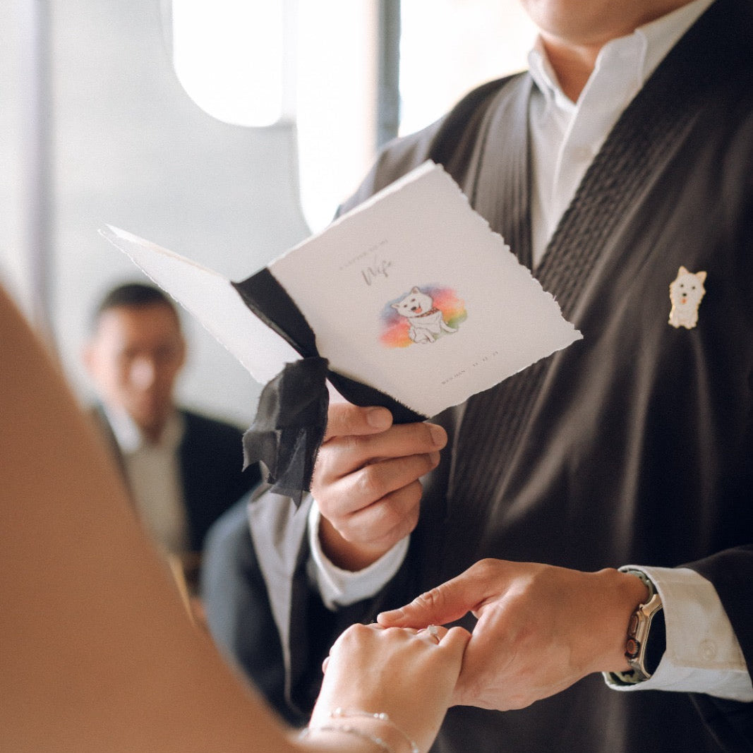 Our vow cards look beautiful in photos and videos — no A4 paper or phones in sight. They keep your vows steady, helping you stay composed when emotions run high.