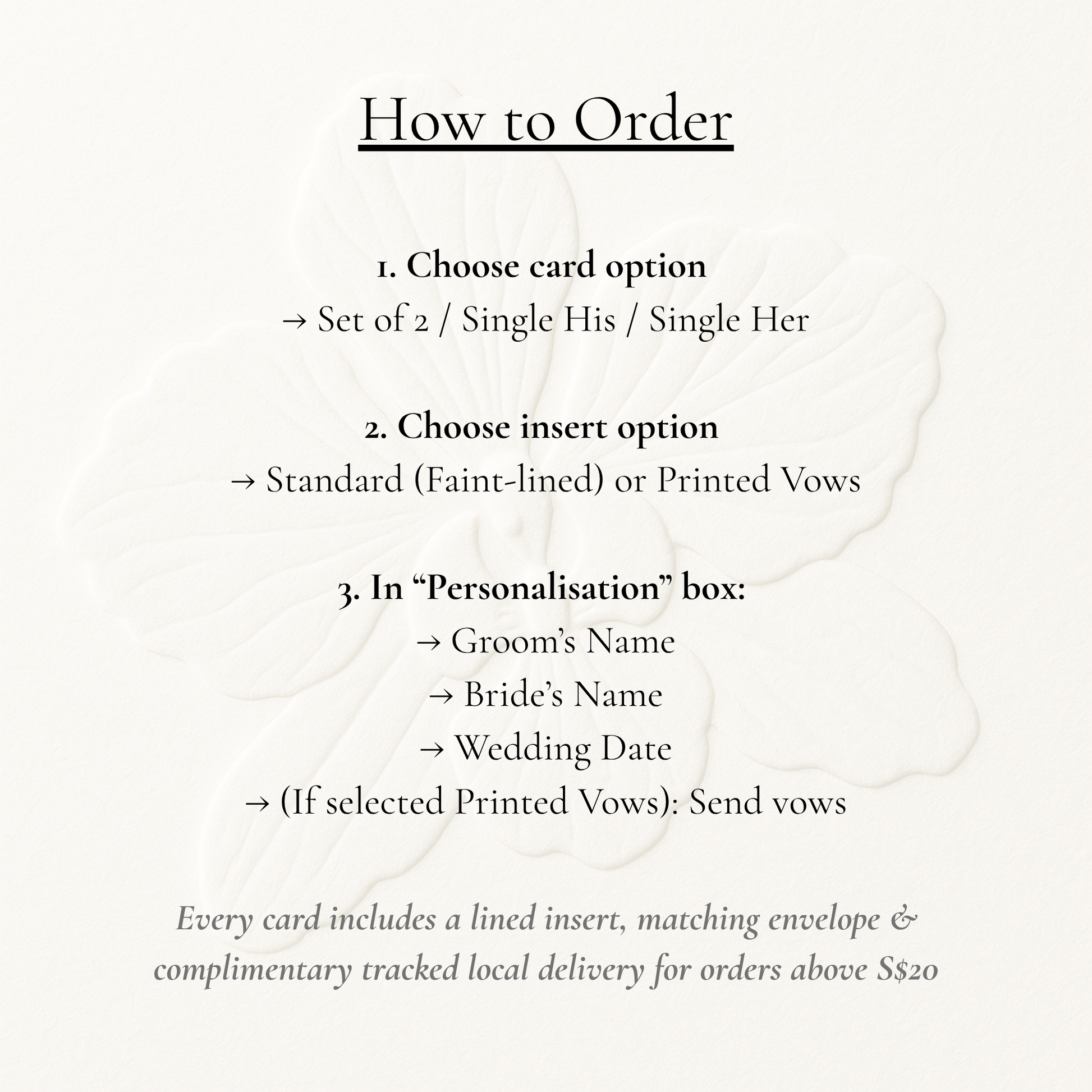 Printed on premium 300gsm cardstock with clean typography, each card includes a discreet lined insert sheet, allowing you to write your vows neatly while keeping the design elegant and unobtrusive in photos.