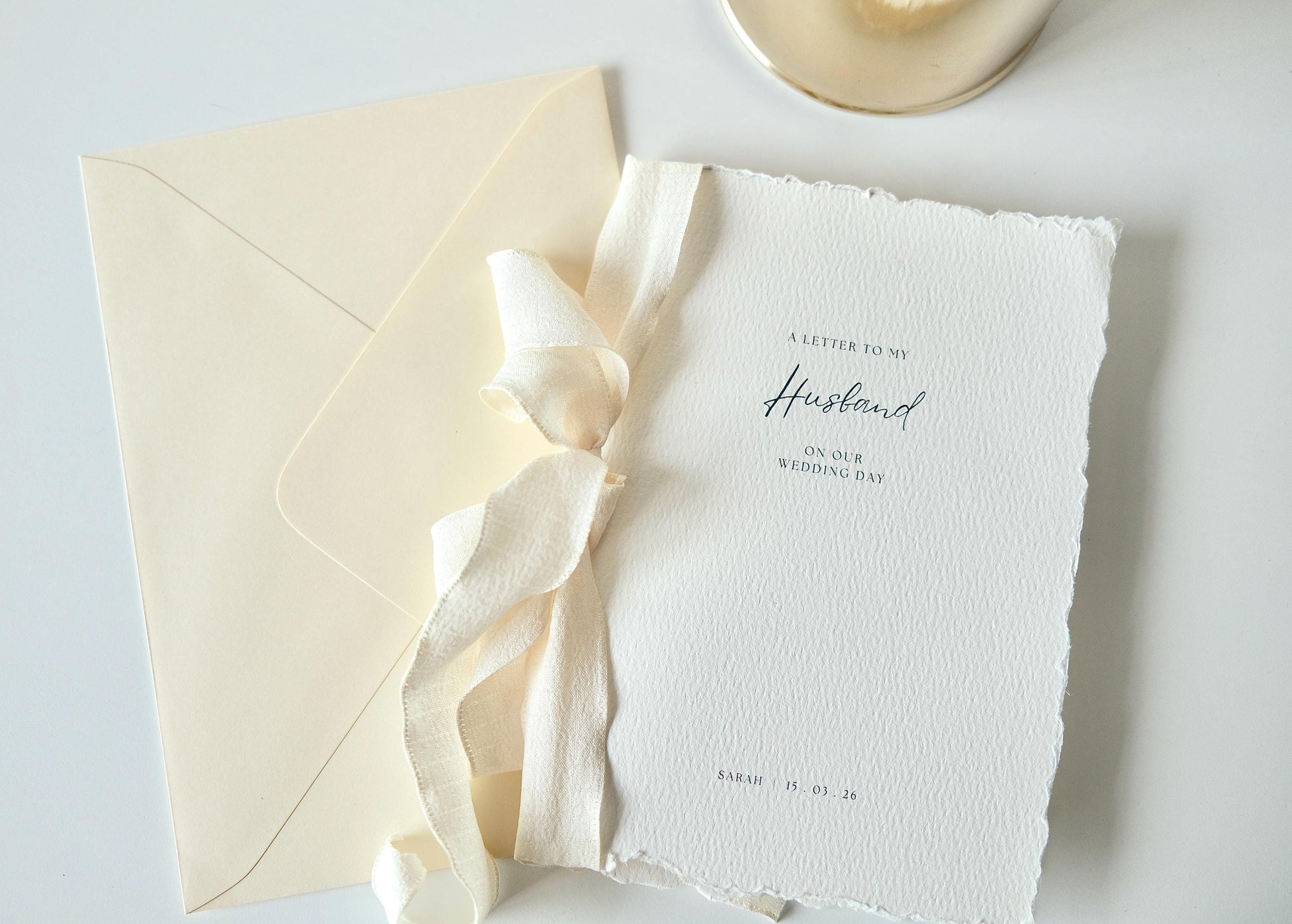 Capture your most intimate words with our Calligraphy Cotton Wedding Letter Cards, designed with hand-torn deckled edges on 100% cotton paper for a raw yet refined finish. Printed with elegant calligraphy script - “A Letter to My Husband” or “A Letter to My Wife” - these cards embody romantic simplicity, perfect for heartfelt vows, private letters, or keepsakes to treasure long after the wedding day.