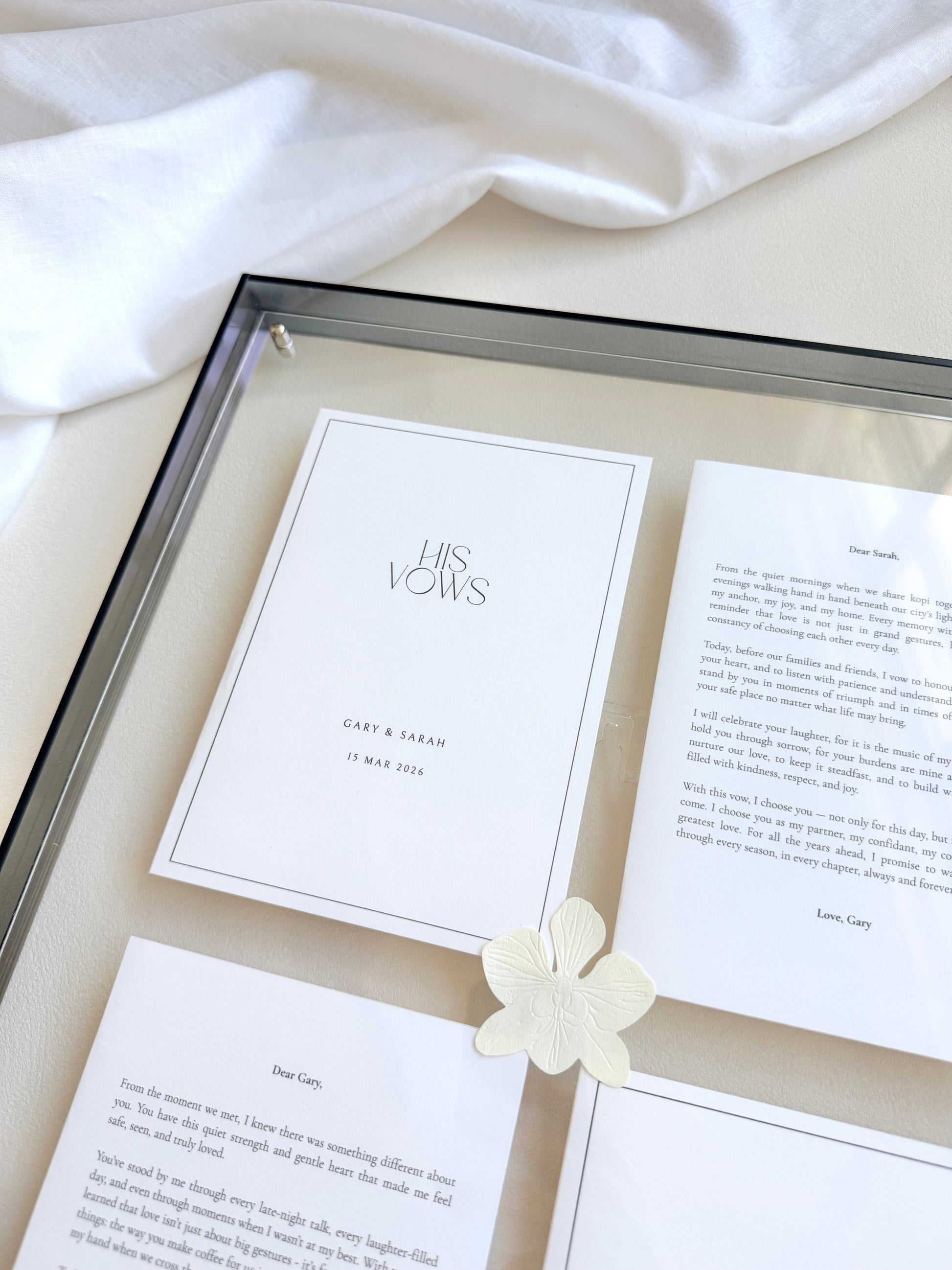 When paired with our vow cards, this frame transforms vows into a lasting visual reminder of your commitment.